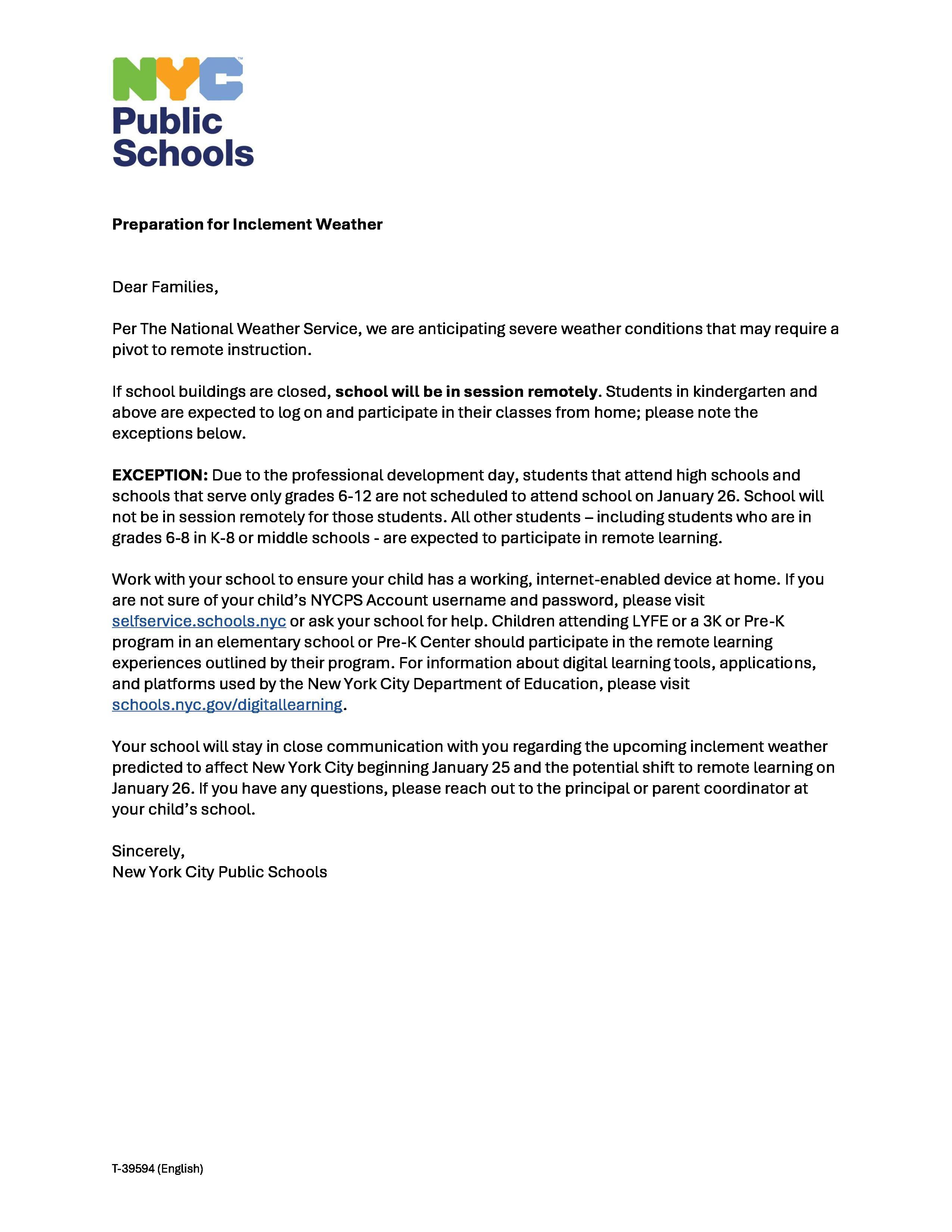 Possible pivot to remote transitioning letter to help you in case of school closure due to inclement weather.