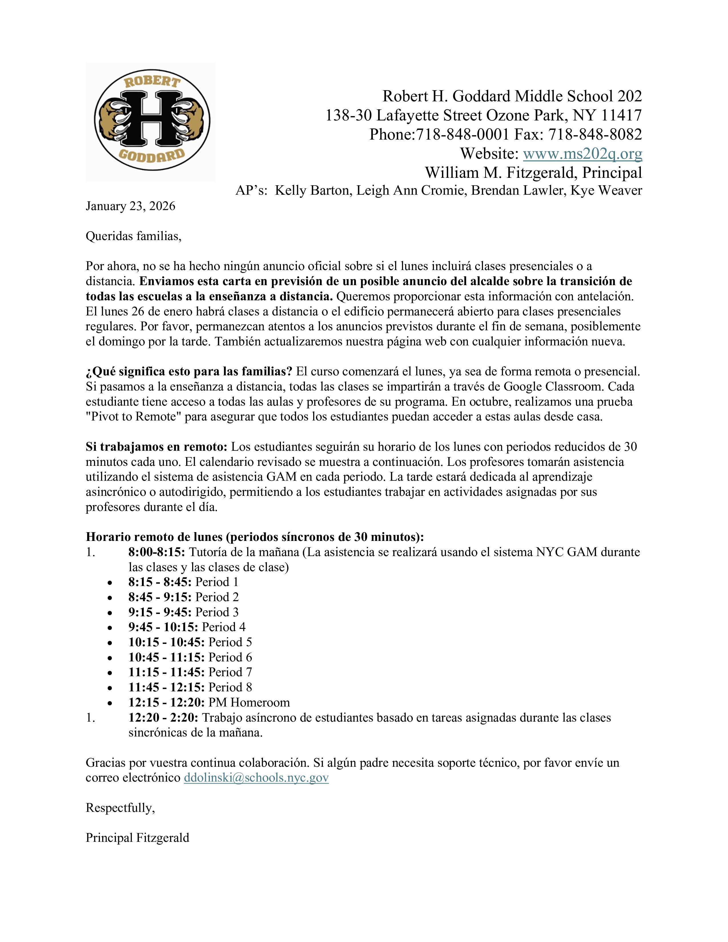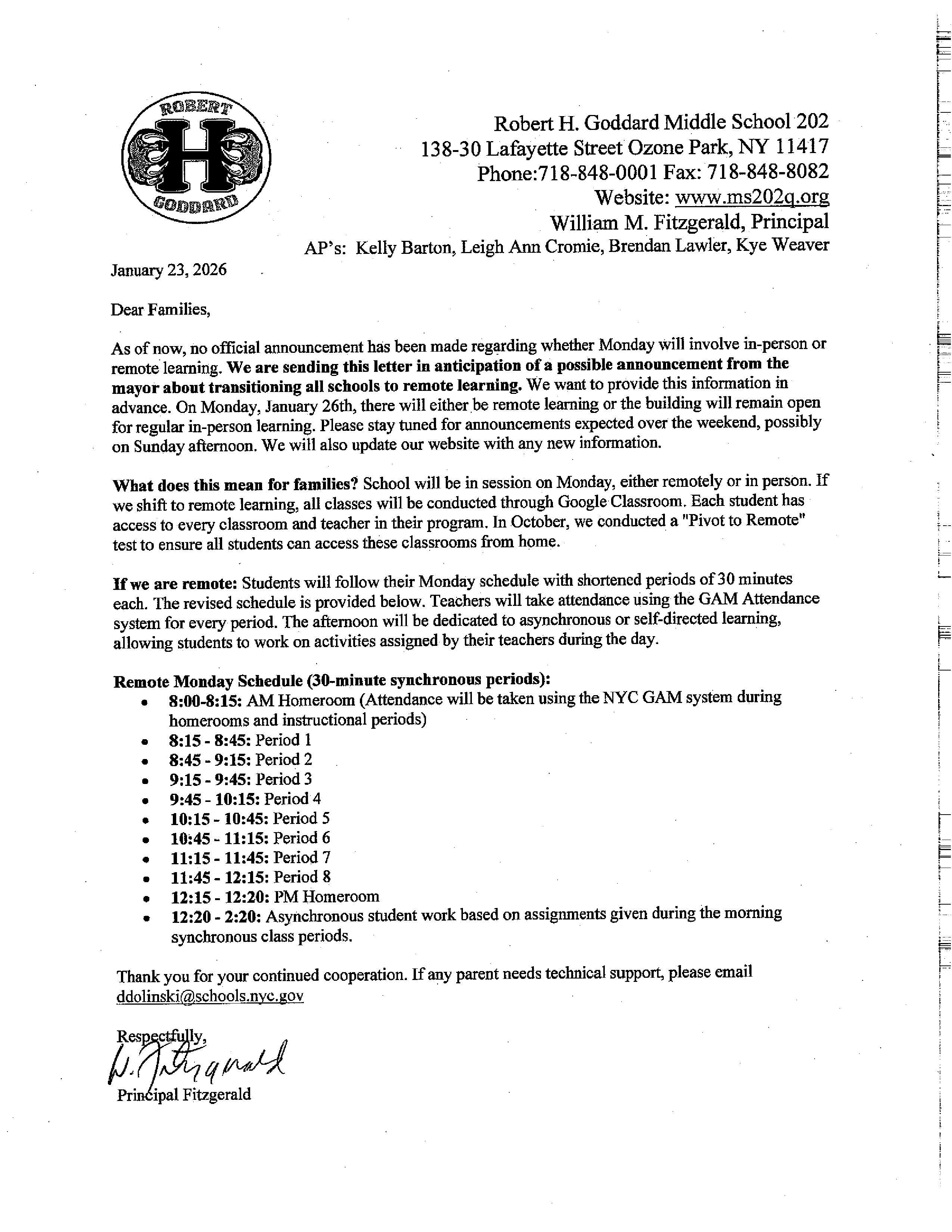 Important Message from Principal Fitzgerald